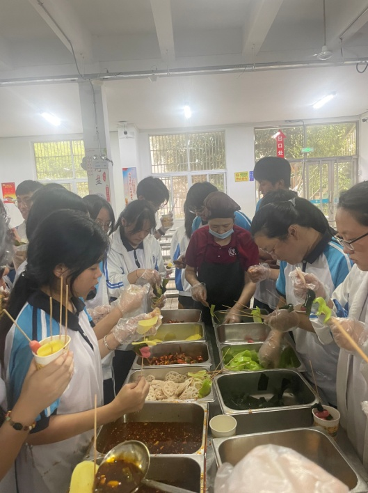 自制缽缽雞:“缽缽雞,一元一串的缽缽雞”。這是線下一種很火的網(wǎng)紅小吃,通過(guò)這次活動(dòng),讓孩子們也來(lái)制作一把潮流小吃“缽缽雞”。
